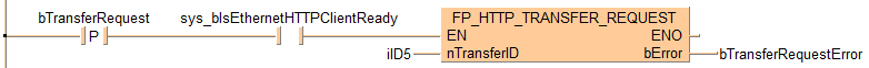 END_VARLorsque bTransferRequest passe de FALSE à TRUE et lorsque la variable système sys_bIsEthernetHTTPClientReady est TRUE, l’instruction est exécutée. Une requête de transfert HTTP est envoyée pour l’unité Ethernet 5.