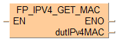 Cette instruction FP lit les paramètres de l’adresse MAC utilisée par la connexion Ethernet et écrit les valeurs dans le DUT FP_IPv4_MAC_DUT.