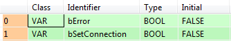 END_VARLorsque bSetConnection passe de FALSE à TRUE et lorsque sys_bIsEthernetInitializing est FALSE, l’instruction est exécutée.