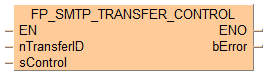 Cette instruction FP contrôle le transfert SMTP vers une unité Ethernet spécifiée par nTransferID. Les mots de contrôle valides sont 'ENABLE', 'DISABLE' et 'CANCEL'.