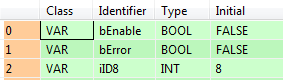 Toutes les variables d’entrée et de sortie utilisées pour programmer cette fonction ont été déclarées dans l’en-tête du POU. Le même en-tête de POU est utilisé pour tous les langages de programmation.