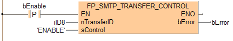 END_VARLorsque bEnable bascule de FALSE à TRUE, l’instruction est exécutée. Le transfert SMTP est activé pour l’unité Ethernet 8.