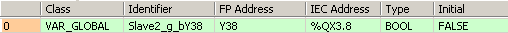 Pour permettre au maître d’accéder aux données de l’esclave, vous devez affecter des adresses utilisateurs fixes (adresses identiques aux données de l’esclave) dans la liste des variables globales.