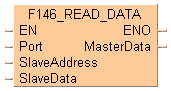Utilisez cette instruction pour lire les données d’un esclave via le port de communication avec le protocole MEWTOCOL ou Modbus RTU, selon les paramètres définis dans les registres système du port utilisé. Le maître et l’esclave doivent être définis avec le même protocole. Le maître et l’esclave doivent avoir des zones de mémoire correspondantes. Si les données de l’esclave ne sont pas disponibles dans la zone utilisateur du maître, utilisez F146_READ_DATA_TYPE_OFFS ou F145F146_MODBUS_MASTER.