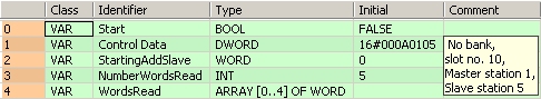 Il n’est pas possible d’exécuter plusieurs instructions F152_RMRD et F153_RMWT en même temps. Le programme doit être configuré de manière à ce que ces instructions F152_RMRD/F153_RMWT soient exécutées lorsque le drapeau autorisant l’exécution de l’instruction sys_bIsMewnetFNotActive est TRUE.