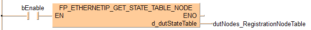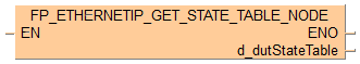 Cette instruction FP lit la table des numéros de nœuds, recherche les nœuds qui ont été enregistrés pour la communication cyclique et sauvegarde les valeurs dans la variable de sortie du DUT FP_ETHERNETIP_STATE_TABLE_DUT.
