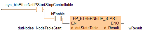 END_VARLorsque les variables sys_bIsEtherNetIPStartStopControllable et bEnable sont définies sur TRUE, la fonction est exécutée.