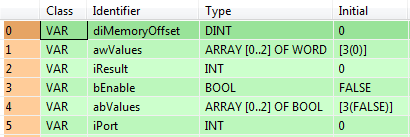 Toutes les variables d’entrée et de sortie utilisées pour programmer cette fonction ont été déclarées dans l’en-tête du POU. Le même en-tête de POU est utilisé pour tous les langages de programmation.