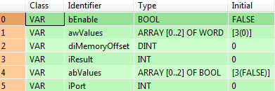 Toutes les variables d’entrée et de sortie utilisées pour programmer cette fonction ont été déclarées dans l’en-tête du POU. Le même en-tête de POU est utilisé pour tous les langages de programmation.