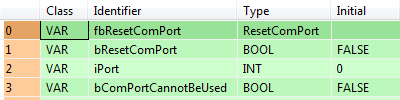 END_VARLorsque la variable bResetComPort est sur TRUE, le bloc fonction est exécuté.
