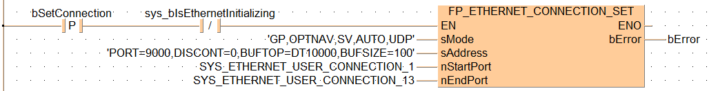 END_VARLorsque la variable bSetConnection passe de FALSE à TRUE et lorsque la variable système sys_bIsEthernetInitializing n’est pasTRUE, la fonction est exécutée.