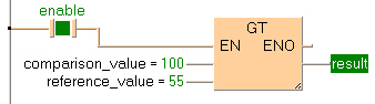 END_VARDans cet exemple, les variables d’entrée comparison_value, reference_value et enable ont été déclarées. Vous pouvez aussi entrer des constantes directement dans la fonction (l’entrée enable, par exemple pour des tests).