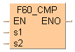 Les données de 16 bits désignées par s1 sont comparées aux données désignées par s2 lorsque le déclencheur EN est TRUE. Le résultat de la comparaison est sauvegardé dans les variables système sys_bIsGreaterThan (drapeau >), sys_bIsEqual (drapeau =), sys_bIsLessThan (drapeau <) et sys_bIsCarry (drapeau de retenue).