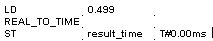 pendant le mode en ligne, le résultat de 0.00ms s’affiche immédiatement. La valeur REAL en entrée étant inférieure à 0.5, celle-ci est arrondie à 0.0.