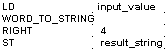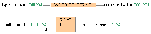 Pour exécuter cette opération, la fonction standard RIGHT est utilisée avec la fonction WORD_TO_STRING. RIGHT crée une chaîne de caractères alignée à droite de longueur L.