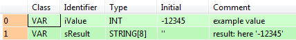 Toutes les variables d’entrée et de sortie utilisées pour programmer cette fonction ont été déclarées dans l’en-tête du POU. Le même en-tête de POU est utilisé pour tous les langages de programmation.
