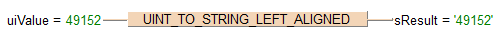 Cette instruction convertit une valeur du type de données INTEGER non signé en une valeur du type de données STRING en format décimal aligné à gauche.