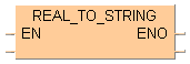 La fonction REAL_TO_STRING convertit une valeur du type REAL en une valeur du type STRING[15] avec 7 caractères avant et après le point décimal. La chaîne de caractères qui en résulte est alignée à droite entre '-999999.0000000' et '9999999.0000000-'. Le signe plus n’est pas affiché pour les chiffres positifs. Les zéros placés à gauche sont remplacés par des espaces (par exemple, -12.0 devient STRING '