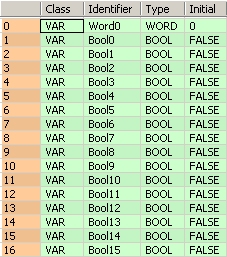 Les sorties Bool0...Bool15 n’ont pas besoin d’être affectées dans l’éditeur LD ou FBD, ou d’être utilisées explicitement dans la liste formelle des paramètres de l’éditeur ST. Le code programme est uniquement généré par les sorties qui sont réellement utilisées.