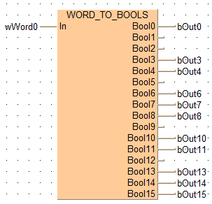 Cette fonction convertit une valeur du type de données WORD bit à bit en 16 valeurs du type BOOL.