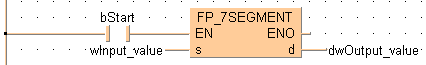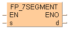 Cette instruction FP convertit les données ou constantes spécifiées par s en données 4 digits pour affichage 7 segments lorsque le déclencheur EN est TRUE. Les données converties sont sauvegardées dans la zone commençant à d. Les données pour affichage 7 segments occupent 8 bits (1 octet) pour représenter 1 digit.