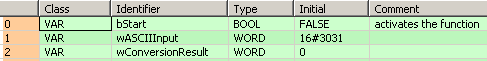 Toutes les variables d’entrée et de sortie utilisées pour programmer cette fonction ont été déclarées dans l’en-tête du POU. Le même en-tête de POU est utilisé pour tous les langages de programmation.