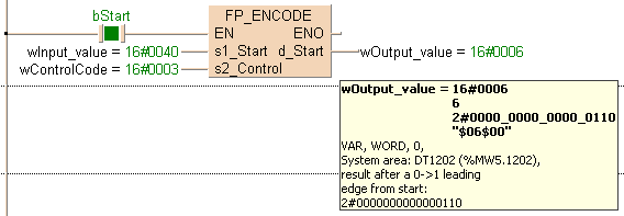 Le résultat du codage 8 (décimal) est enregistré dans d_Start lorsque le déclencheur EN est TRUE.