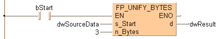 Cette instruction FP combine le nombre d’octets spécifié par n_Bytes des données à partir de s_Start lorsque le déclencheur EN est TRUE. Le résultat est sauvegardé dans d.