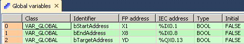 Dans la liste des variables globales, vous définissez des variables qui sont accessibles par tous les POU dans le projet.