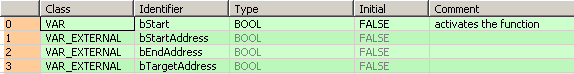 Toutes les variables d’entrée et de sortie utilisées pour programmer cette fonction ont été déclarées dans l’en-tête du POU. Le même en-tête de POU est utilisé pour tous les langages de programmation.