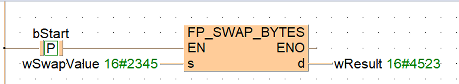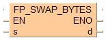 Cette instruction FP échange les octets de poids fort et les octets de poids faible de la zone de données spécifiée par s, lorsque le déclencheur EN est TRUE. Le résultat est transféré vers d.