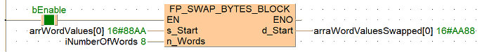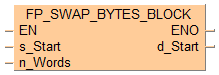 Cette instruction FP échange les octets de poids fort avec les octets de poids faible de tous les mots de la zone de données spécifiée par s_Start et n_Words, lorsque le déclencheur EN est TRUE. Le résultat est transféré vers d_Start.