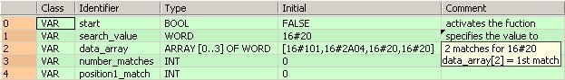 La position à laquelle la première donnée a été trouvée, à partir de la zone de départ de 16 bits, est transférée vers sys_iPositionOfFirstMatch.