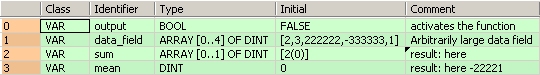 data_array: ARRAY [0..4] OF DINT:=[4,7,-32,13,5];