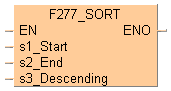 La constante 0 est indiquée en entrée s3, ce qui signifie que le tri est exécuté dans l’ordre croissant. Cependant, vous pouvez déclarer une variable dans l’en-tête du POU et l’écrire directement dans le corps, dans l’entrée s3.