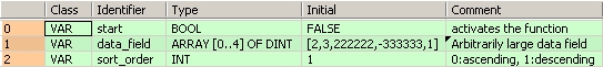 END_VARDans cet exemple, la variable d’entrée sort_order est déclarée. Vous pouvez aussi entrer directement une constante au contact d’entrée de la fonction.