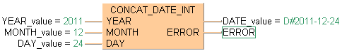 La sortie booléenne ERROR est activée si les valeurs d’entrée sont des valeurs de date et heure invalides.