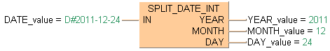 SPLIT_DATE_INT répartit une valeur du type de données DATE en valeurs INT pour l’année, le mois et le jour.