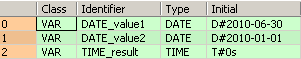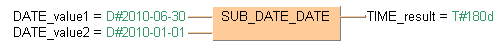 SUB_DATE_DATE soustrait une valeur du type de données DATE d’une autre valeur DATE. Le résultat est sauvegardé dans la variable de sortie du type de données TIME.
