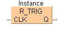 La sortie Q d’un bloc fonction R_TRIG reste activée pendant un cycle API complet après apparition d’un front montant (l’état passe de FALSE -> TRUE) à l’entrée CLK. Elle est ensuite réinitialisée au cycle suivant.