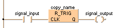 Le bloc fonction R_TRIG (rising edge trigger) permet de détecter un front montant sur une entrée.