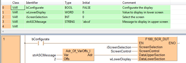Toutes les variables d’entrée et de sortie utilisées pour programmer cette fonction ont été déclarées dans l’en-tête du POU.Le même en-tête de POU est utilisé pour tous les langages de programmation.