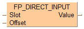 Cette instruction FP lit la valeur courante de la mémoire de l’entrée directe spécifiée par Slot et Offset indépendamment d’une actualisation des E/S.