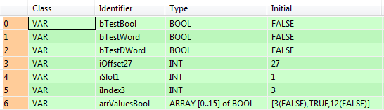 arrValuesBool: ARRAY [0..15] of BOOL:=[3(FALSE),TRUE,12(FALSE)];