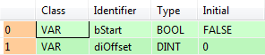 Toutes les variables d’entrée et de sortie utilisées pour programmer cette fonction ont été déclarées dans l’en-tête du POU. Le même en-tête de POU est utilisé pour tous les langages de programmation.
