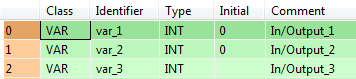 Toutes les variables d’entrée et de sortie utilisées pour programmer cette fonction sont déclarées dans l’en-tête du POU.