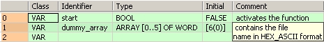 (* Writing the file name (Hex-ASCII format) into dummy_array[0] (Array [0..5] of WORD)*) |