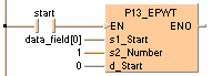 Par exemple, si vous exécutez P13_EPWT avec le drapeau R901A (temps d’impulsion de 0,1s), l’EEPROM ne fonctionnera plus après 100000 * 0,1s=10000s (2,8 heures). Cependant, cette fonction vous sera très utile si vous souhaitez sauvegarder des données de profil tels que les paramètres de positionnement ou d’autres paramètres qui ne sont pas modifiés fréquemment.