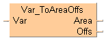 Cette fonction copie la valeur de la variable d’entrée Var sur la zone d’adresses définie par la zone mémoire Area et l’adresse offset Offs. La taille de la variable d’entrée Var détermine ainsi le nombre de données copiées.