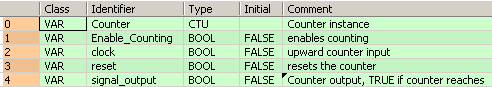 Toutes les variables d’entrée et de sortie utilisées pour programmer cette fonction sont déclarées dans l’en-tête du POU.
